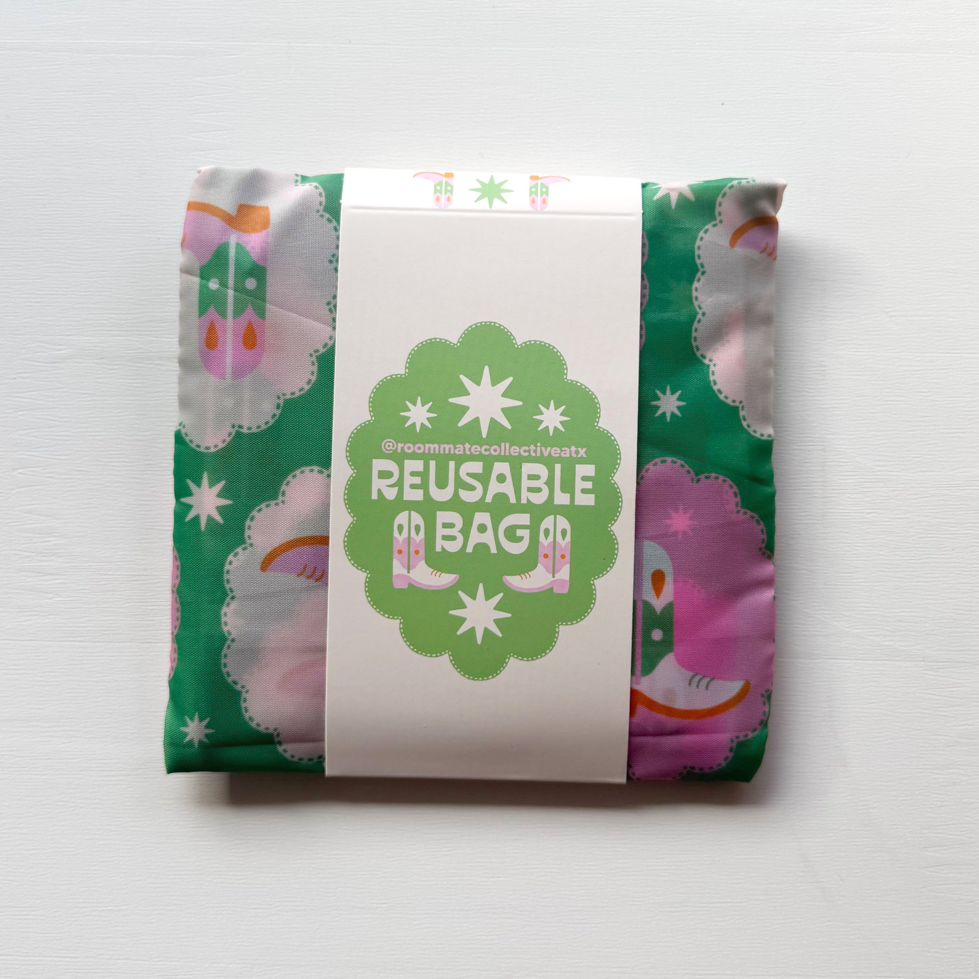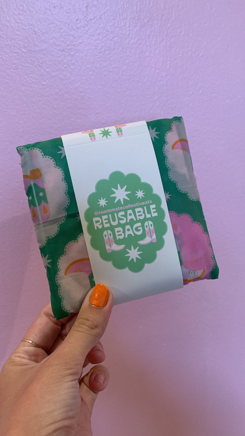 The cutest tote bag featuring all your fave friends from the RC. Folds out to be the perfect lightweight tote, then folds into the internal pocket when you're not using it!